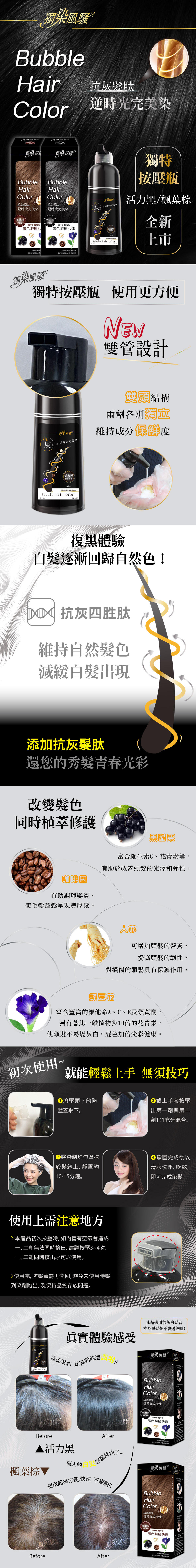 2. 實際染後髮色會因個人原生髮色(染髮前髮色)及髮質狀況不同。